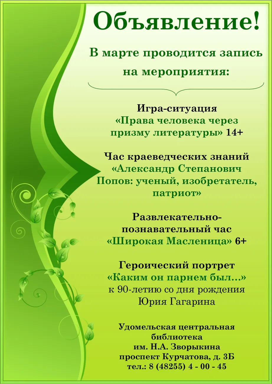 В марте проводится запись на мероприятия!