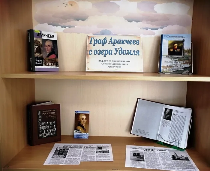 Вниманию читателей библиотеки представлена выставка «Граф Аракчеев с озера Удомля» посвященная 255-летию со дня рождения этого видного государственного деятеля. На выставке представлена литература о жизни и связи Алексея Андреевича с удомельским краем.