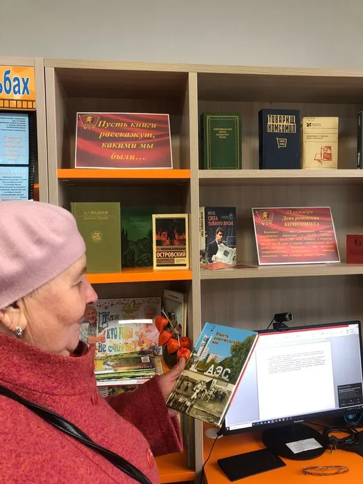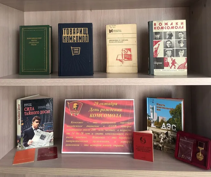 К этой знаменательной дате на взрослом абонементе библиотеки оформлена выставка «Пусть книги расскажут, какими мы были». На выставке представлены художественные книги о подвигах комсомольцев: «Как закалялась сталь» Н. Островского, «Молодая гвардия» А. Фадеева, «И это всё о нем» В. Липатова. Об истории становления комсомола расскажут сборники «Товарищ комсомол», «Дневники и письма комсомольцев», «Вожаки комсомола». Особого внимания заслуживает сборник произведений удомельских поэтов и писателей об Удомле, изданный к 540-летию Удомли и 100-летию ВЛКСМ «Юность комсомольская моя». Читатели и гости библиотеки смогут подержать в руках комсомольские значки и оригинальный комсомольский билет.
