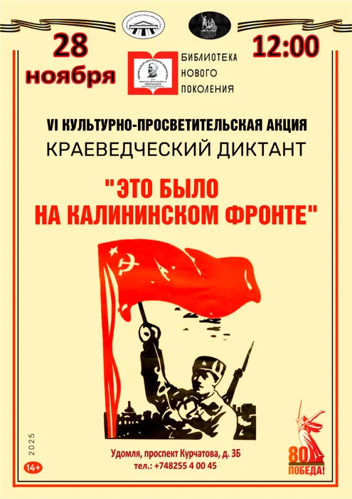 VI Областная культурно-просветительская акция по популяризации знаний о Тверском регионе «Краеведческий диктант», организованная Тверской областной универсальной научной библиотекой им. А.М. Горького при поддержке Отделения Российского исторического общества в Тверской области, в этом году посвящена 80-летию Победы в Великой Отечественной войне 1941-1945 годов.