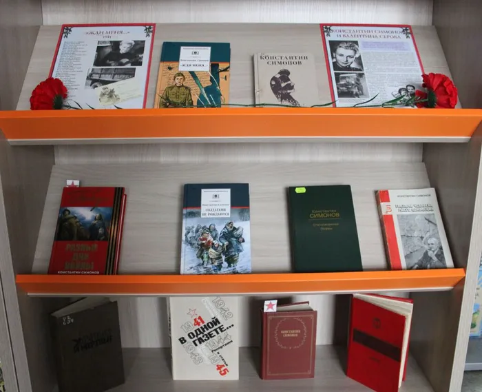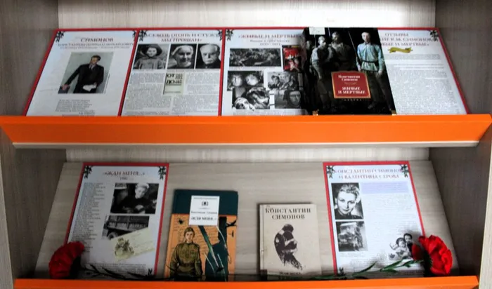 На выставке представлены ключевые работы автора: роман‑эпопея «Живые и мёртвые» — масштабное полотно, рассказывающее о трагической и героической эпохе Великой Отечественной войны, стихотворение «Жди меня, и я вернусь» — гимн надежды, который переписывали от руки и учили наизусть на фронте. Эти строки стали опорой для миллионов людей в самые тяжёлые времена.