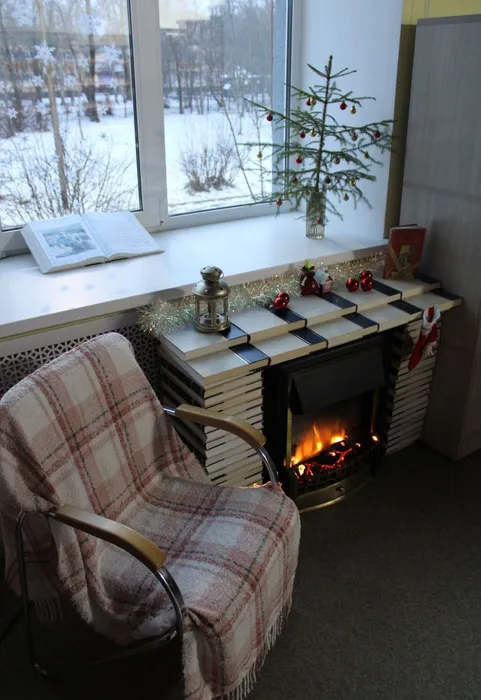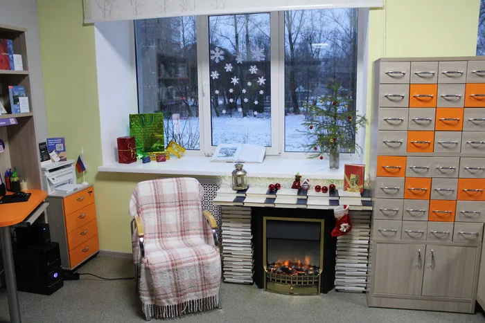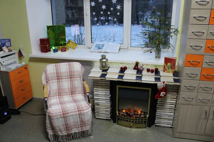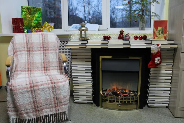 Эта фотозона — не просто декоративный уголок. Это приглашение замедлиться, вдохнуть аромат хвои и книжных страниц, вспомнить, что библиотека — это не только хранилище знаний, но и место, где рождается настроение, где бумажные страницы могут стать кирпичами для воображаемого очага, а тишина — лучшим саундтреком для зимних размышлений.