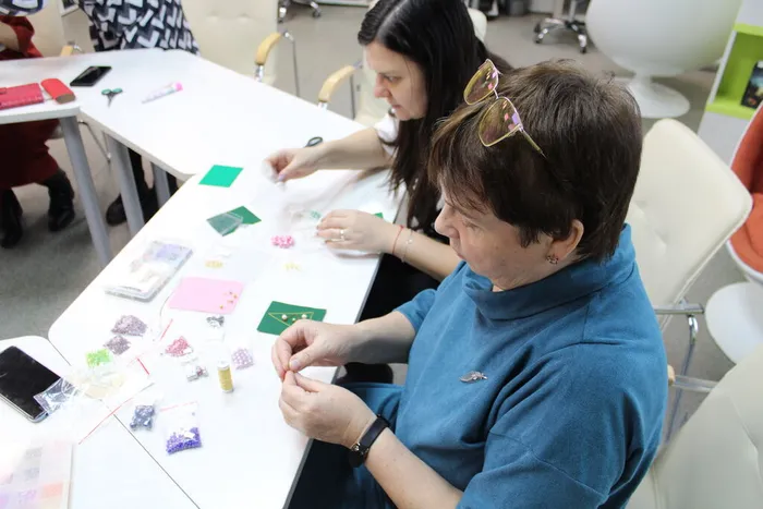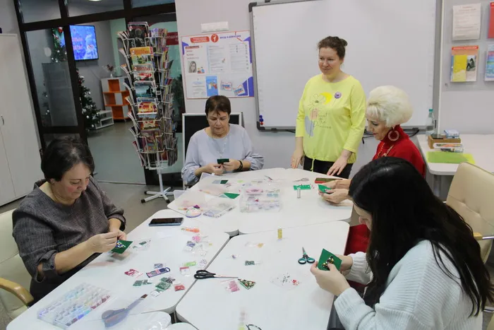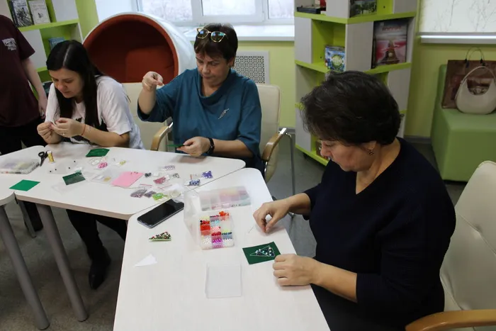 На протяжении трех декабрьских дней в библиотеке царила атмосфера вдохновения и творчества. Под чутким руководством Екатерины Андреевны и ее помощницы Галины Лазаревой участники шаг за шагом создавали настоящие произведения искусства – изящные броши в виде елочек.