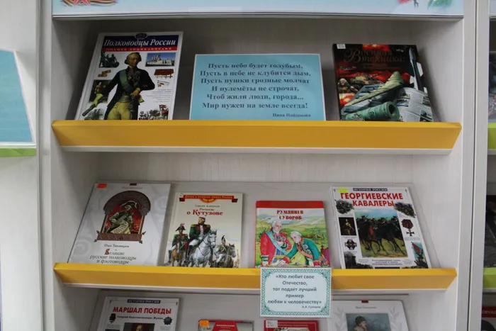 Литература, представленная на выставке, призвана пробудить в каждом читателе чувство гордости за свою Родину, за ее славную историю и за тех, кто готов ее защищать.