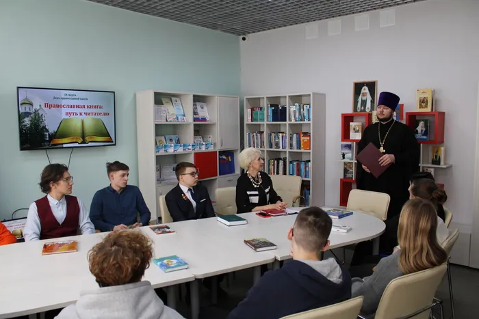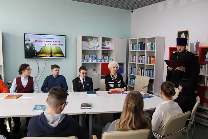 Участниками круглого стола стали учащиеся городских школ, сотрудники библиотеки и Благочинный Удомельского муниципального округа Иерей Петр (Губанов). На мероприятии молодое поколение посмотрели видеосюжет об истории Дня православной книги, поразмышляли над вопросами: с какой православной литературой необходимо знакомиться, какую роль в современном мире играют духовные издания, как они влияют на личность человека, что вкладывается в понятие «черное» слово, «красное» слово и «золотое». Поговорили о милосердии, духовном воспитании и любви к ближнему. Иерей Петр (Губанов) представил уникальные издания, посвященные жизненному пути и служению Патриарха Кирилла, которые были переданы в дар библиотеке.