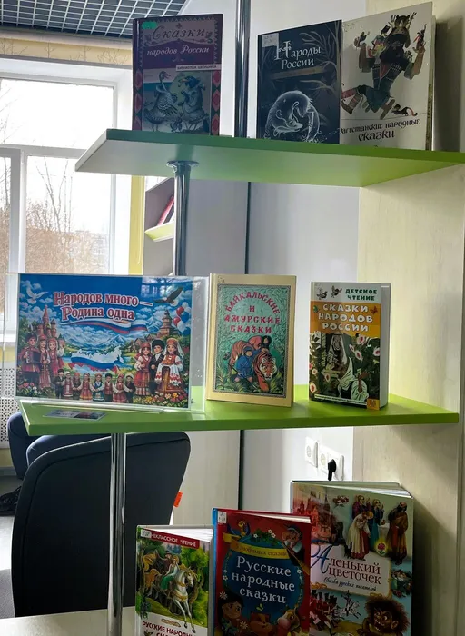 В год единства народов России детский абонемент представляет выставку «Народов много – Родина одна». На стеллажах собраны книжные сокровища – сказки, воплощающие душу народов нашей необъятной Родины. Здесь оживают вековые русские предания, переплетаются чарующие истории малых народов, звучат былины Байкала и Амура - сливаясь в единый, завораживающий хор.
