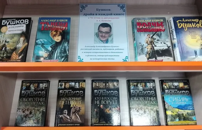 Представьте: вы листаете страницы, а перед вами оживают тайны Петербурга, разворачиваются интриги Российской империи, а герои бросаются в головокружительные приключения. Всё это – мир Александра Бушкова, одного из самых популярных российских писателей, чьё творчество сочетает историческую глубину, острый сюжет и неповторимый авторский стиль. В честь 70-летия писателя в библиотеке открыта книжная выставка «Бушков: драйв в каждой книге». Здесь каждый из вас найдёт что-то своё: от захватывающих приключений до исторических расследований и дерзких гипотез.