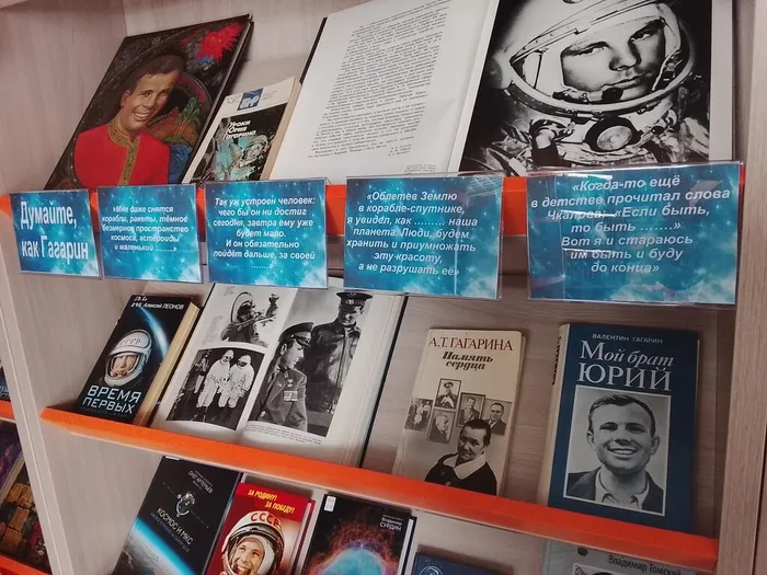 А вы готовы бросить вызов самому себе? На выставке стартует викторина «Думайте, как Гагарин». Мы подготовили для вас знаменитые высказывания Юрия Алексеевича, но одно слово в каждом из них скрыто. Ваша миссия: восстановить фразу! Приходите в библиотеку, покажите, что вы мыслите в одном ритме с первым космонавтом Земли!