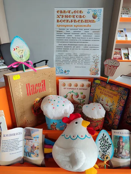 Дорогие друзья! На взрослом абонементе библиотеки работает выставка «Светлое Христово Воскресение: праздник единства», на которой представлена литература, посвящённая радостной и светлой Пасхе. Этот древний праздник, отмечающий воскрешение Иисуса Христа, является одним из самых значимых событий в православном календаре. Он символизирует победу жизни над смертью, света над тьмой, и дарит надежду на спасение и вечную жизнь.