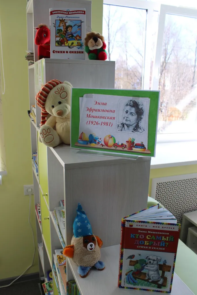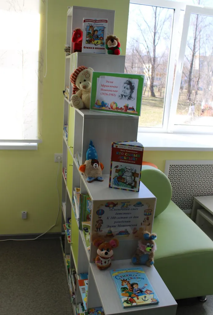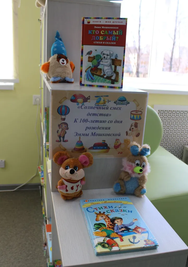 На детском абонементе библиотеки открылась книжная выставка «Солнечный смех детства» к 100‑летию со дня рождения замечательной детской поэтессы Эммы Мошковской.