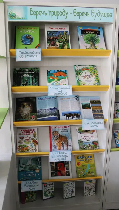 14 апреля отмечается День экологических знаний. На детском абонементе оформлена книжно‑журнальная выставка «Беречь природу — беречь будущее». Здесь собраны книги и журналы о последних научных достижениях в области экологии, редких и вымирающих видах животных и растений, а также о глобальных климатических изменениях. Выставка разделена на несколько тематических разделов.