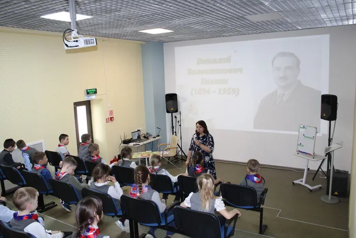 Всё началось с небольшого путешествия в прошлое: библиотекарь познакомила ребят с самим Бианки, рассказала о его семье и о том, как отец писателя привил ему любовь к природе, ту самую, что потом зазвучала в его книгах.
