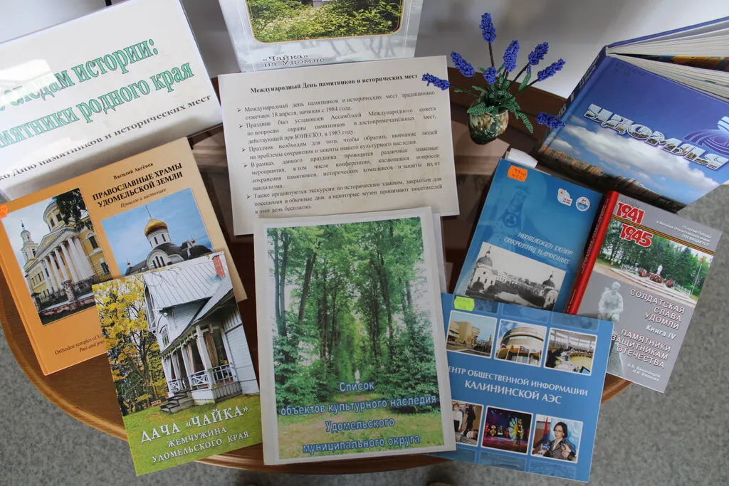 В краеведческом центре библиотеки к этой дате представлена выставка «По следам истории: памятники родного края», которая познакомит читателей с историей памятников, и памятных мест удомельской земли.