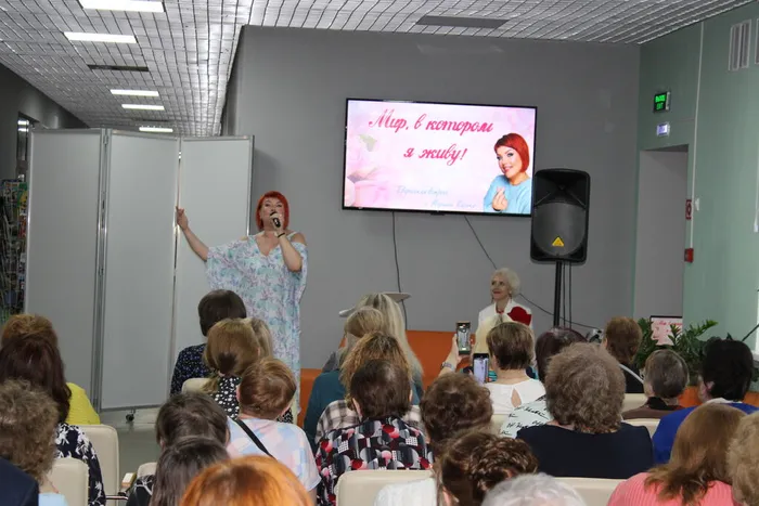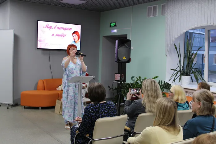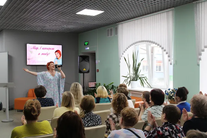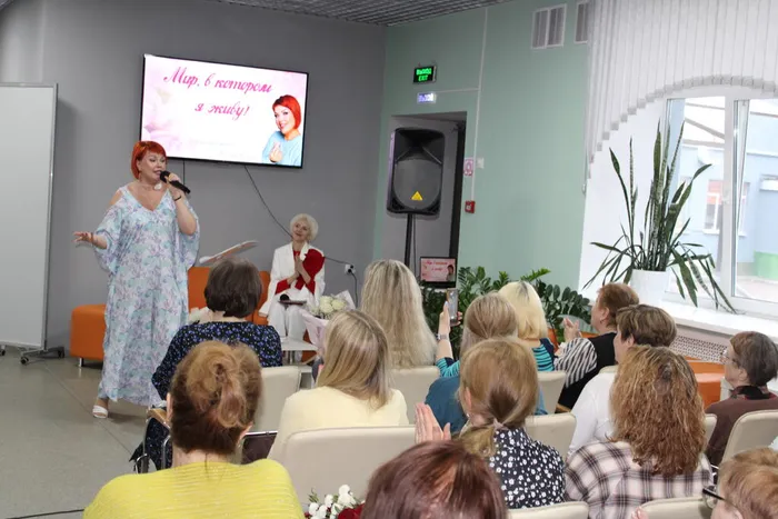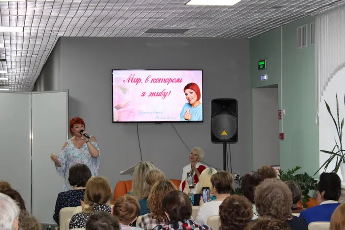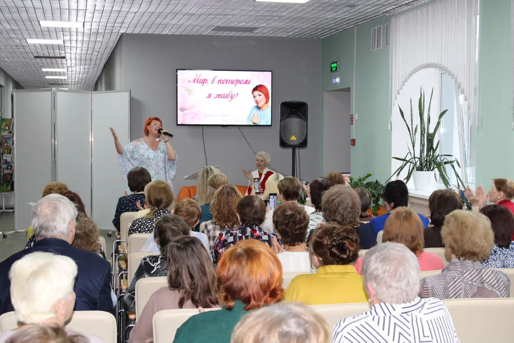 В этот замечательный вечер, казалось сама весна заглянула к нам в библиотеку, подарив зрителям солнечное настроение, яркие эмоции, изумительную музыку и душевное общение с любимой артисткой и ее прекрасным творчеством. Есть на земле такие люди, появление которых на свете озарено Солнцем. Высшие силы награждают их разными талантами, красотой, душевностью, определенным шармом и самым дорогим – любовью к миру. Для них не существует препятствий и преград, их сила в доброте и красоте души, которая во всем и всех видит только лучшее. Все это в идеальной гармонии соединилось в героине творческой встречи «Мир, в котором я живу!»!