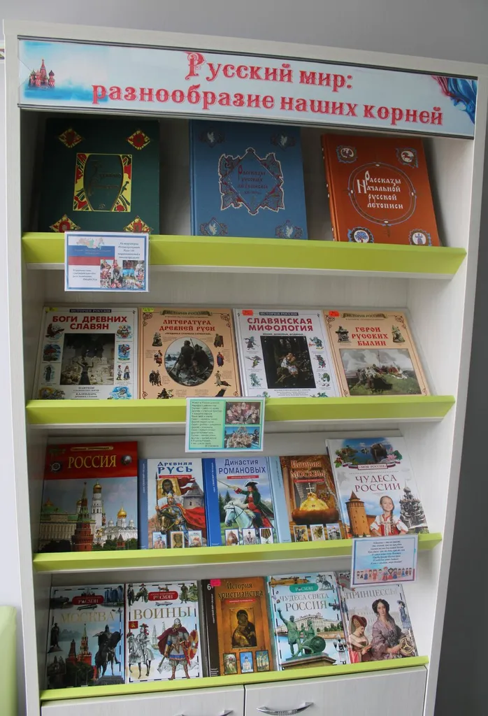 Детский абонемент библиотеки приглашает посетить книжную выставку «Русский мир: разнообразие наших корней». Это не просто собрание книг, а настоящее путешествие, позволяющее прикоснуться к истокам нашей культуры, понять ее глубину и богатство.
